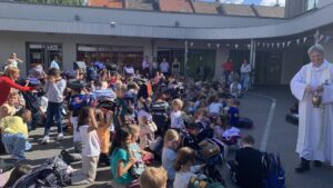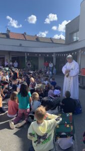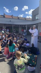 Le vendredi 5 septembre, nous nous sommes rassemblés pour vivre la bénédiction des cartables et des doudous. Par la bénédiction des cartables et des doudous, ce sont les enfants qui sont bénis et tout ce qu’ils vivront pendant l’année scolaire qui est placé sous le regard du Seigneur.